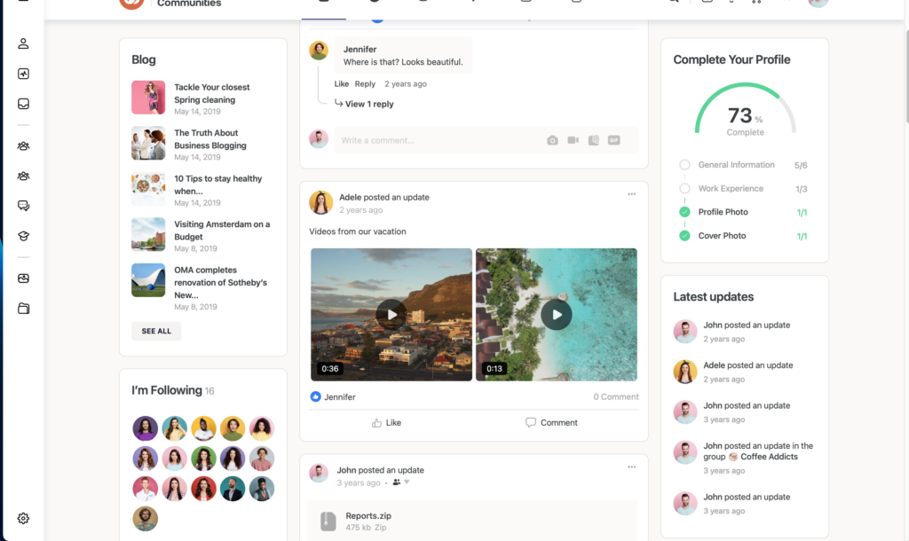 Blogbeiträge verfassen, Veranstaltungen organisieren Stellenanzeigen schalten, sich bewerben, oder Dokumente, Videos und Fotos hochladen und teilen. Alles kein Problem, alles an einem Ort.
