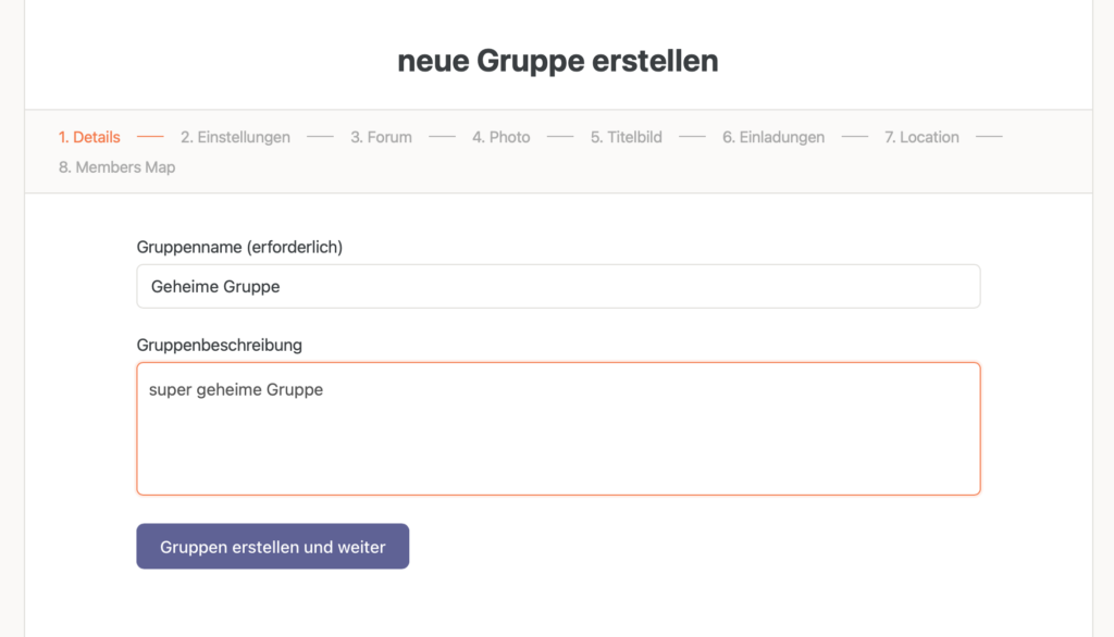 Versteckte (geheime) Gruppen können auch von jedem Mitglied erstellt werden, aber nur auf Einladung betreten werden und sind auf der Website nicht in den Verzeichnissen sichtbar.