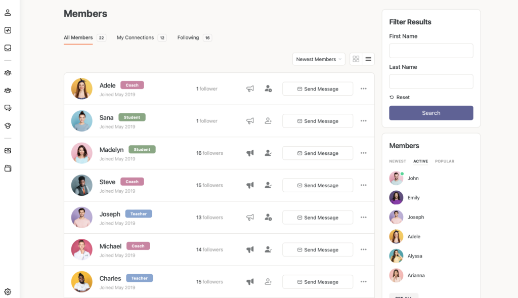 In den Mitgliederprofilen, die wie Facebook oder Instagram-Profile aufgebaut sind, sind alle wichtigen Informationen über ein Mitglied zu finden. Dazu gehören neben dem Namen und dem Profilfoto auch der Standort, die Interessen und die Kontaktinformationen des Nutzers.