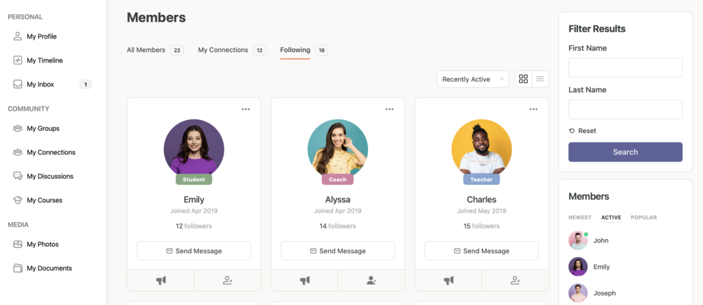 Ein Mitglied kann auch einem anderen Mitglied folgen. Wenn ein Mitglied einem anderen Mitglied folgt, sieht es die Inhalte, die das andere Mitglied mit Freunden geteilt hat, in seinem Aktivitäts-Feed. Die beiden Nutzer sind dadurch jedoch nicht befreundet.