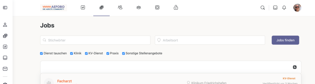 Vermisst Du Deine Kommilitonen von früher? Gründe eine Alumni-Gruppe Deiner Fakultät. Willst Du mit Deinen lokalen Praxiskollegen Vertretung organisieren oder suchst Du eine Dienstbörse für KV-Dienste und Weiterbildungsstellen? Registriere Dich und werde Teil der Community.