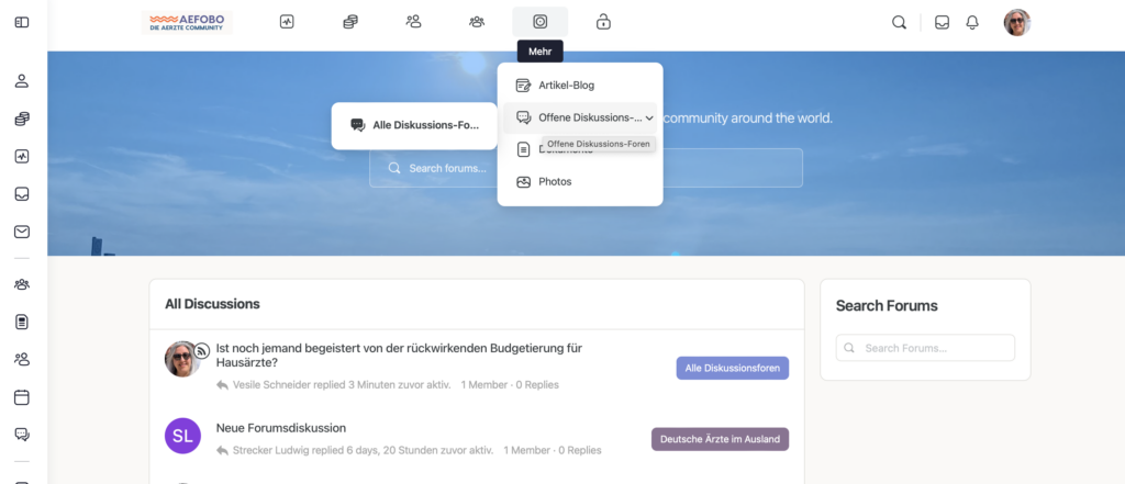 Jedes Mitglied kann ein Thema, das ihn interessiert zur Diskussion stellen. Man kann die Diskussionen abonnieren und nur lesen oder sich beteiligen.