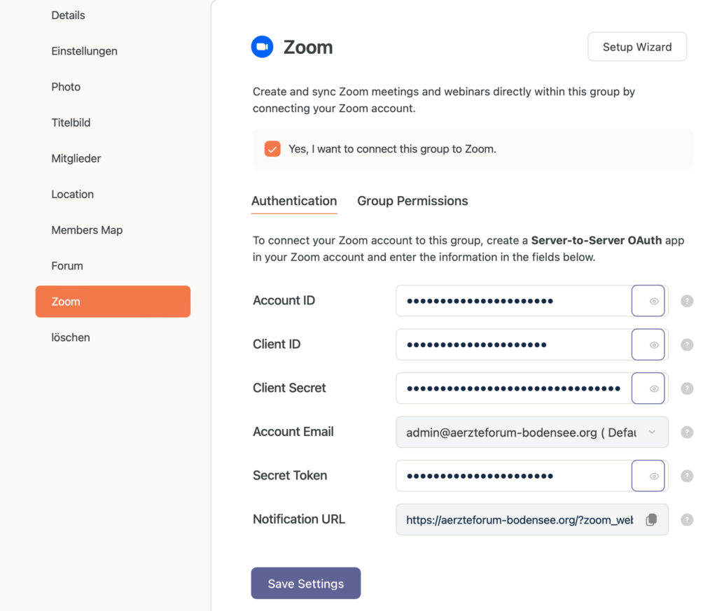 Gruppen-Organisatoren können sich mit Zoom verbinden und Zoom-Meetings veranstalten.